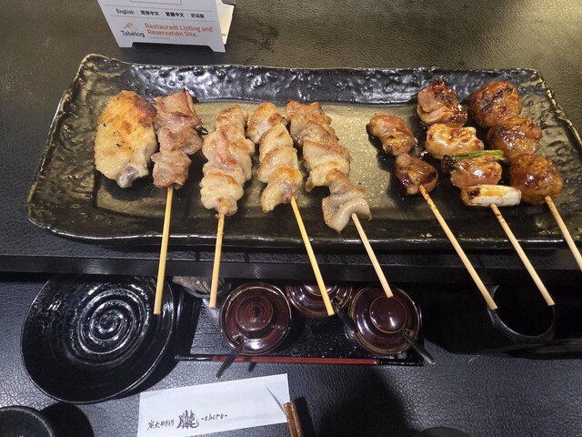 いろいろな味の焼き鳥串はどれも本当...