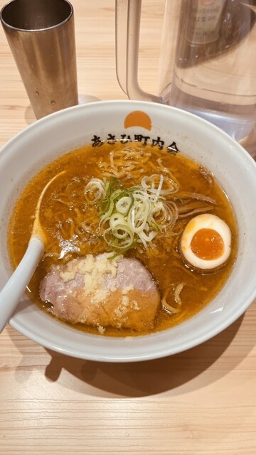 ガッツリと聴いたニンニクの香りとしょっぱいスープを油がまとめてくれてとにかく中毒性のある美味しい味噌ラーメンです。味だけでいったら普通のラーメンの方が美味しいと思うがやっぱりあさひ町内会に来たらこのラーメンを食べたくなってしまいます。