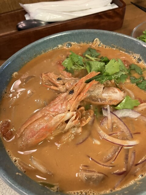 この日もランチで来店。定番メニューのガパオライスやグリーンカレー、鶏肉のフォーなどどれを食べても美味しいが、この日は、日替わりメニューがトムヤンクンヌードルと聞きすかさず選択。