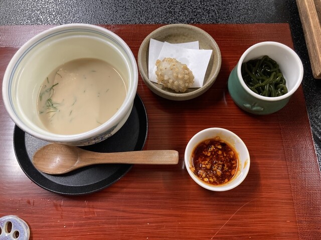 初めての訪問です。最初の一品はレンコンのすり流し汁。レンコンの食感を絶妙に残して味わい深い出汁に合わせてあります。この一品で素晴らしい店であることを確信、これから繰り広げられるメニューに期待が膨らみま...