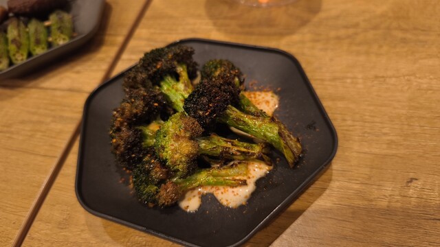焼きブロッコリーも、炭火の魔法にかかっている。