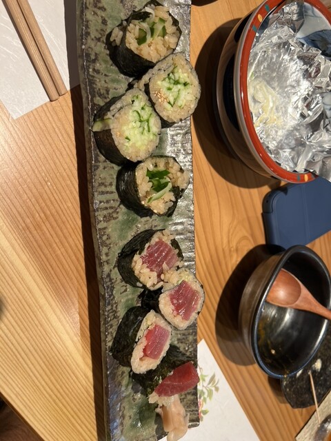 外国からのお客様を連れてこちらへ。お寿司が食べたいと言うので、ここに連れてきた。生魚は食べないし、魚自体もあまり食べないと言うので、まずは、まぐろのにぎりと鉄火巻き。納豆巻きにも挑戦してた。でもやはり鳥の唐揚げがお気に入りで、お代わりしてた。ここの鳥の唐揚げ美味しいからね。テーブル席が広いので、お料理たくさん置けて、4人でもゆっくりできて、とても良かった。