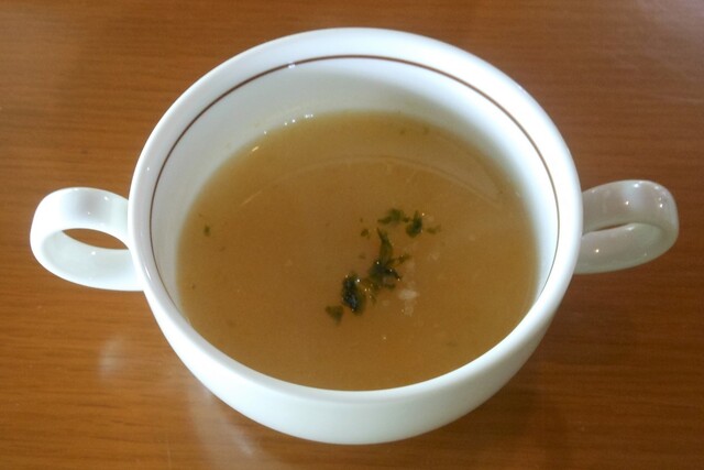 ランチはスープがセットになっていて、この日は和風出汁の冷製かぼちゃスープ。