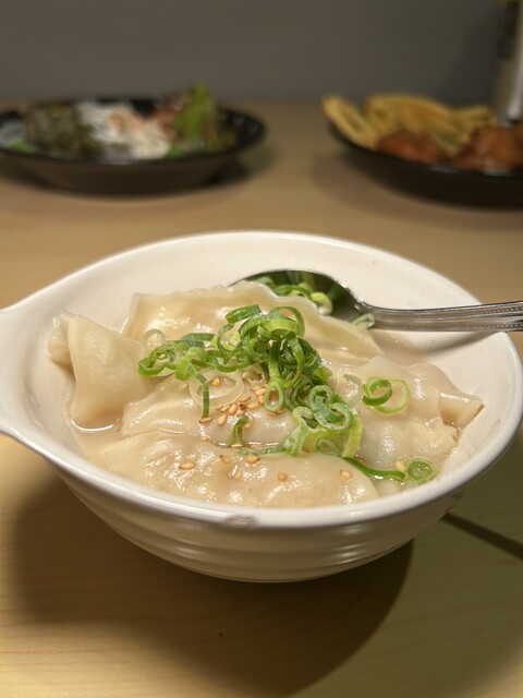 最後に水餃子。もちっとした皮の中にジューシーな肉汁と野菜がぎゅっと詰まっていて、添えられたポン酢や辣油で味変しながら楽しめます。あたたかくて、心もほぐれる…そんな〆にぴったりのひと皿。