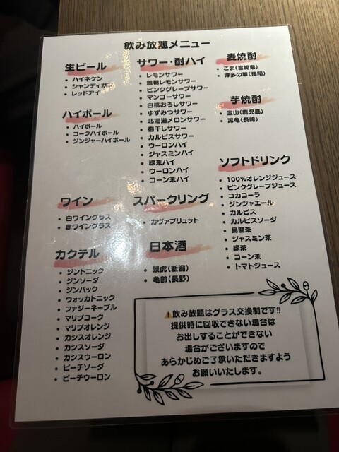 注文はQRコードで、今回のコースの場合だと90分で、自動的にラストオーダー切られちゃうので気をつけてください!