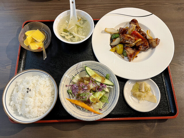 一通りメニューを見て店内を眺めていると、程なくして現れた料理はどれも輝き、とても美味しそう!エビチリのエビは他店では見た事ない位大きくぷりっぷりっしている。味付けも丁度良く美味しい。酢豚も酢鳥も揚げたてを使っているのかカリッとした食感でコレまた美味しい!ニラレバは臭みはなく食をそそる味付け。全てのランチにご飯・スープ・サラダ・漬物・デザートが付き、ご飯はお代わり自由。早速ご飯をお代わりして完食。今日注文した料理はどれも絶品で文句無し!中国人が作る本格中華は大満足でした。 1,080円はとても安く感じました。他のメニューも是非食べてみたいと思います。絶対近いうちにまた伺います。美味しかったです。ご馳走様でした
