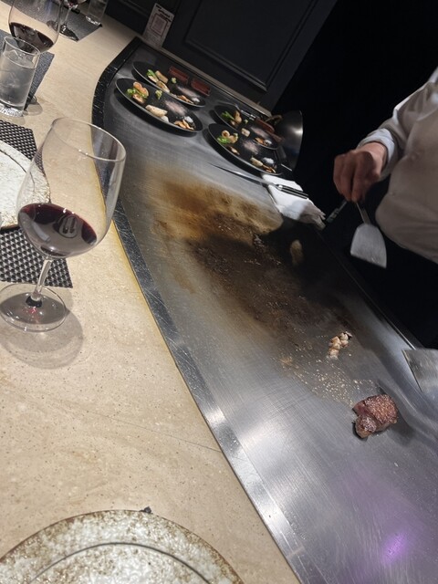 お昼は馬勝った、牛負けたのご飯だったので、夜は牛勝ったになるよう、ロウリュウ並の熱波が体験できる飛び切り美味いステーキ鉄板焼きです^_^