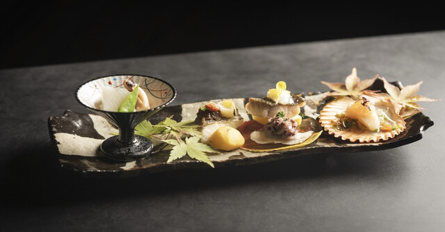 さて、最も楽しみな食事は丁寧に旬の魚を色々な形で料理してあり、県産食材をふんだんに使い、一品一品丁寧に愛媛の里や山、瀬戸内海・宇和海の恵みを、伝統の技に新たな彩りを添えた五感で味わう創作和食になっていました。