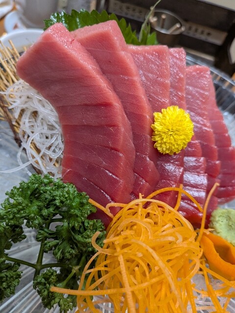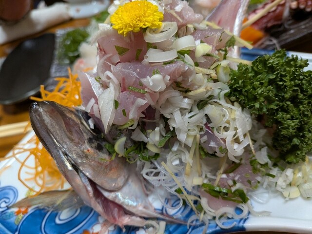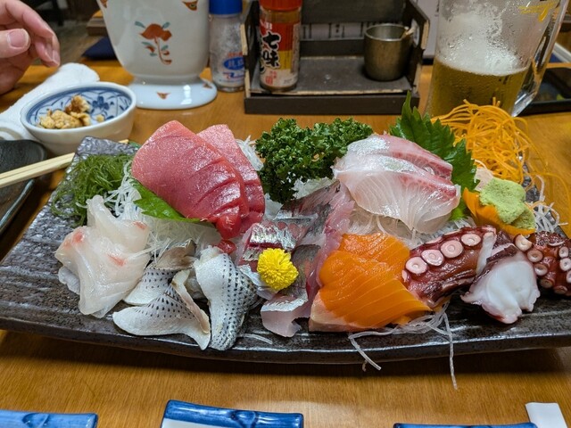 まずは刺盛り2人前、アジフライ、アジたたき、あん肝注文