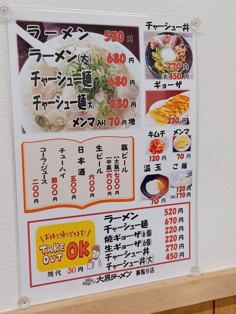 東福寺駅出たところにある博多とんこつラーメンの大黒です。豚骨にしてはあっさり目で京都人にも受ける味です。