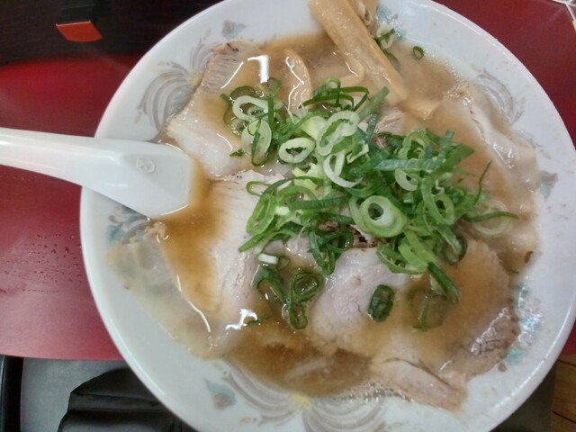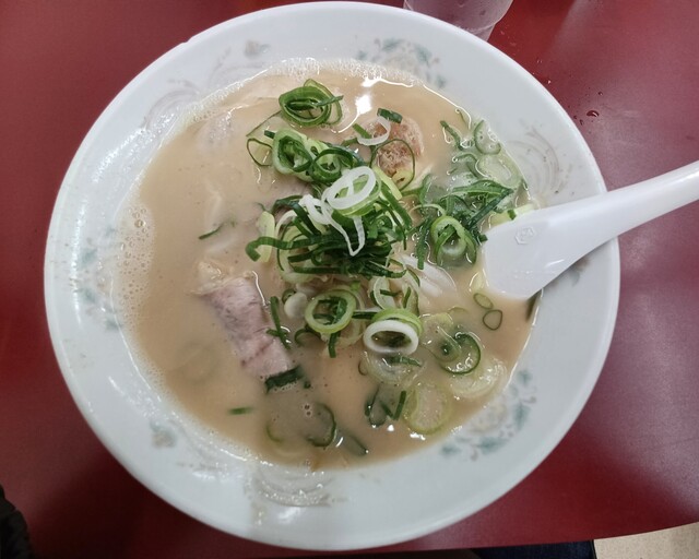 極細麺、チャーシューはたっぷり。午前中からお腹に優しい豚骨スープです。