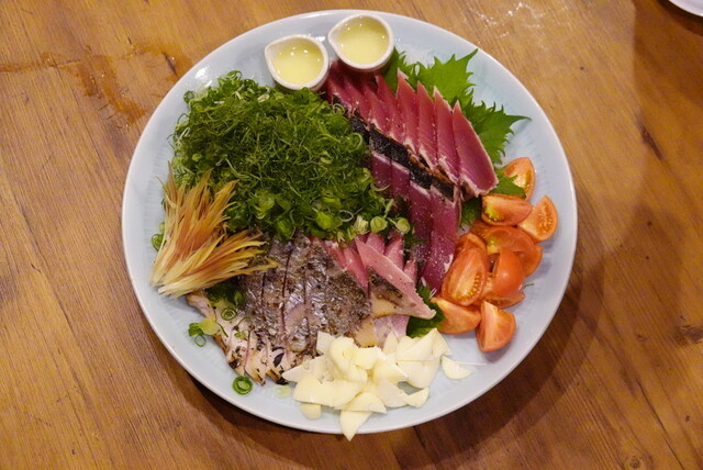 カツオの塩たたき、ハガツオの刺身、土佐牛の炙り、玉子焼、さば寿司、どれもとても美味しかったです。