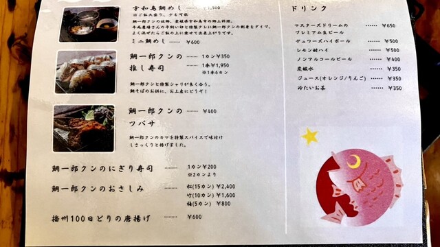 鯛の唐揚げツバサと鯛の握り寿司を注文
