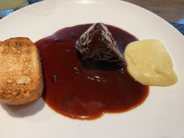 めっちゃ柔らかい牛ホホ肉も素晴らしいですが、個人的にはシチューの濃さがちょうどよく、感動しました。さつまいもの入ったマッシュポテトもバケツいっぱいに入れて食べたいと思えるほどおいしかったです。