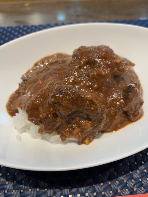 メニューではイチボのステーキ丼でしたが、たまたま前日にカレーを作っており、カレーがあるとのことで変更していただきました。宮崎牛がゴロゴロ入ったスパイスカレーです。スパイスもよく効いており、お肉もほろほろで食べられて嬉しかったです。