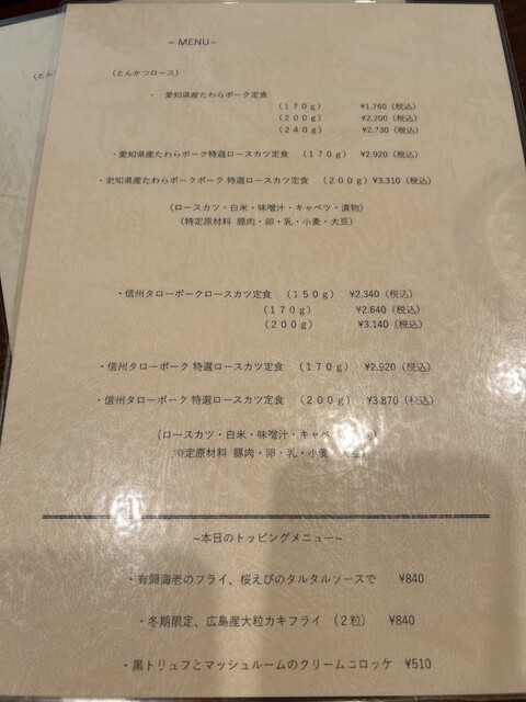 ●たわらポークロースカツ(170g)&ヘレカツ(50g)定食:3,060円