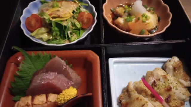 宿泊者限定の松花堂弁当を食べる為にホテル宿泊に来ました。お刺身は脂がしっかりのっててトロみたい、なんて思いながら食べた。