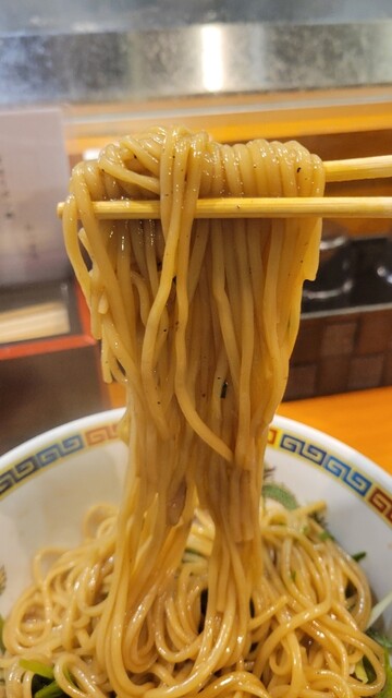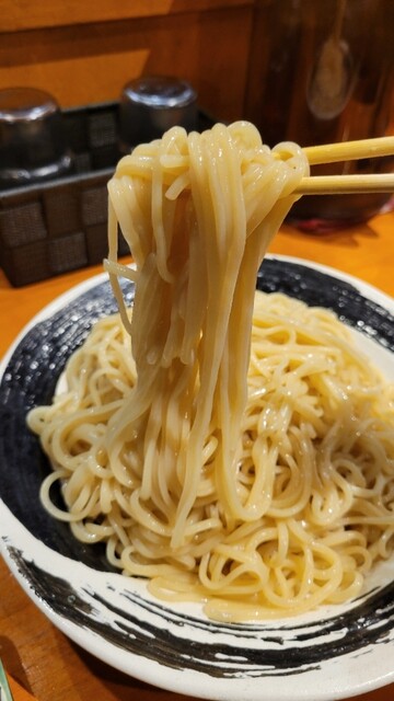 ピリ辛で塩味がバチンッときいたつけ汁にもちもちの麺がよく合いますな~