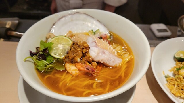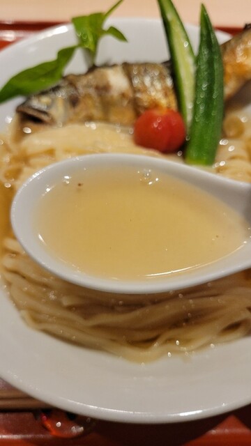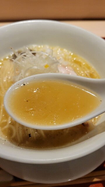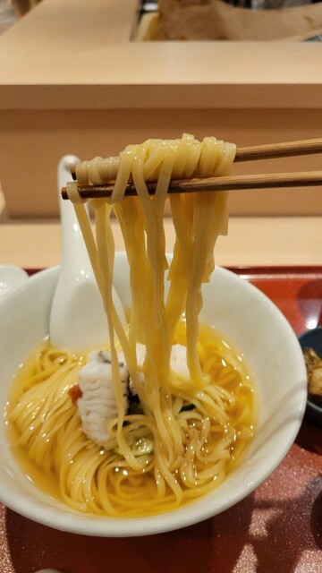 今回のコラボの為に作られた醤油清湯!コースの流れを切らないように緻密に味を組み立てて作られたスープ!麺もいつもより細く!