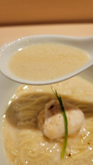 白子を1.5個分スープに溶かし込んだスープは和出汁の旨味とクリーミーな白子が合わさり美味すぎて脳髄が溶けました…強烈な旨味のとろける白子に下の紅葉おろしはピリッと辛く味変にピッタリ