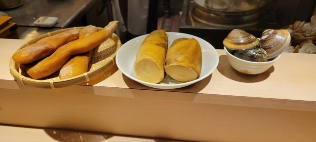 ホタルイカもプリプリで濃厚な味わい春キャベツとアスパラガスは甘く蛤は肉厚、ごぼうの素揚げは香ばしくて満足!