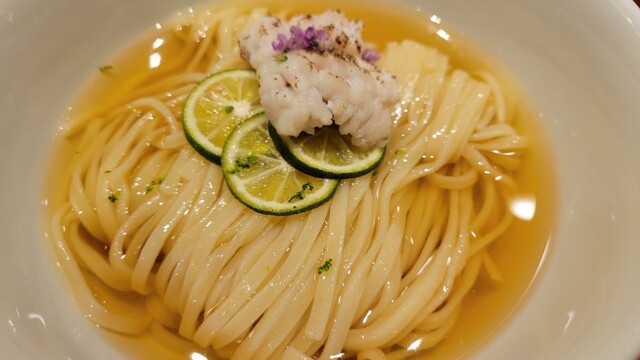 漁獲量0.3%の貴重な銀付き伊吹イリコを使ったスープは程よい苦味でより味に深みが出ていてマジで美味かった淡路産の鱧も身がホロホロ・・・