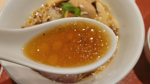 フィッスシュクッペは能登の海老が凝縮されており比内地鶏の卵麺を漬けて食べるとあまりの美味さに飛びました。