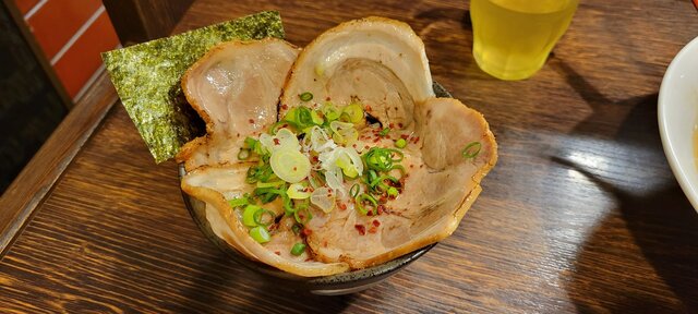 チャーシュー丼はムチッとした食感と脂の豊潤な甘みを感じる炙りチャーシューに甘みと辛みが絶妙なバランスで、更に酸味の効いたタレがご飯とベストマッチ!うますぎる!