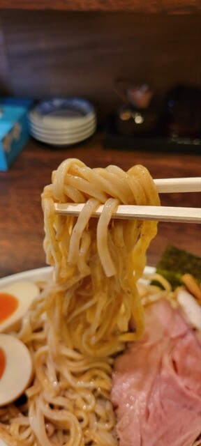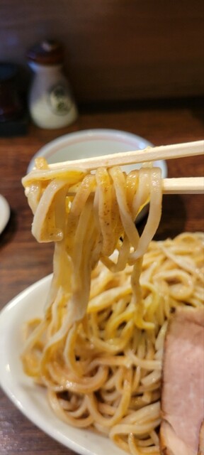 淡成ラーメンと同じく鶏の胴ガラの動物系をベースに魚介と香味野菜からとった出汁なんでしょうけど淡成ラーメンよりも味のパンチが強い(つけ麺のつけダレだから当たり前か)