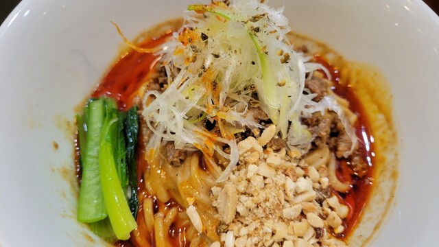 芝麻醤のまろやかな旨味がきいたスープに肉味噌のパンチが加わりラー油のピリリとした辛みと山椒の舌が痺れる刺激と複数の味が一杯に