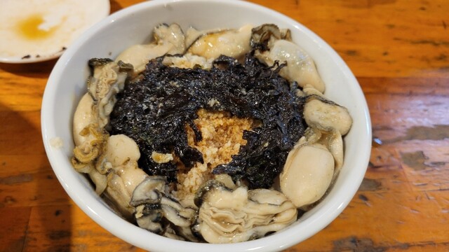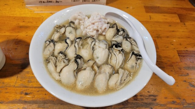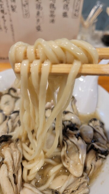 正気を失ってるとしか思えないumami冬の風物詩ポン酢と田楽味噌で牡蠣パクリからのスープゴクリたまらんばい!麺もがっしりうまし