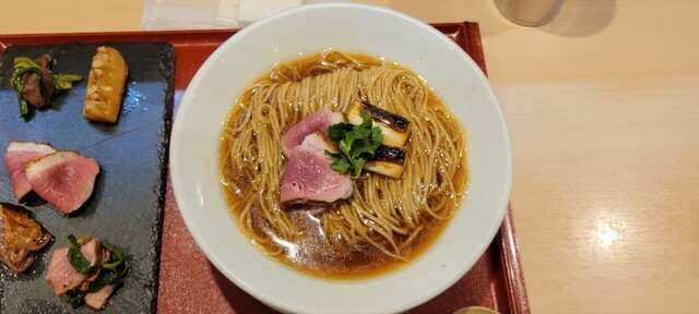 醤油の甘味塩味酸味全てがうまいそのカエシをさらなる次元へと高めている鴨と地鶏のスープもうますぎ。