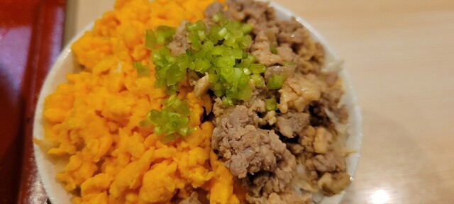 鶏そぼろの二色丼も美味いこと美味いこと鶏そぼろの肉の甘みと濃い目の味付けに卵の甘みが乗っかり販促的な旨さ犯罪ですよこれは!