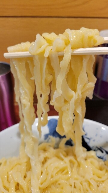 そして麺は店名の通り加水率の高さがうかがえるちぢれ太麺、スープをたくさん絡めてくれるこの麺は柔くもありつつコシも感じさせる不思議な食感の麺