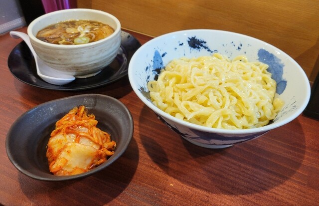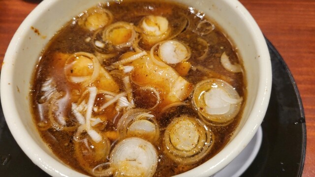 高井田系を思わせる黒々としたスープに太い麺が浸かっております。