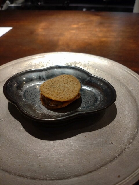 一品目はお麩をお煎餅のようにして中には自家製のお味噌が。ほんのり苦味が広がります。