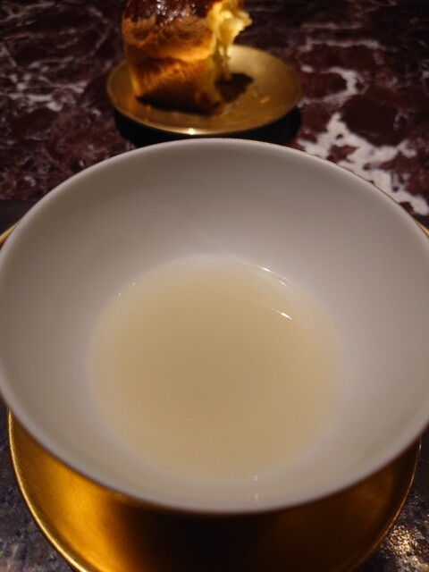 下にはチンゲン菜 きくらげ なめこが入っていてコリコリとした食感も楽しめます。このお出汁がアワビからのみとは思えないほど旨味があって美味しかった。