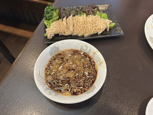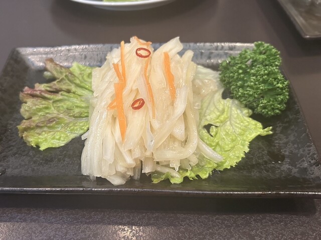 クラゲの前菜は、程よい食感と優しい味のタレでサッパリと美味しく頂けます。