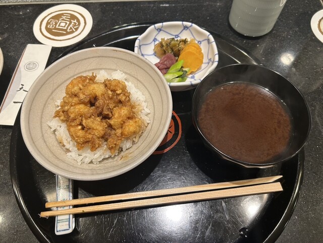 食事(小エビのかき揚げで、天麩羅ご飯、小天丼、天茶が選べます)