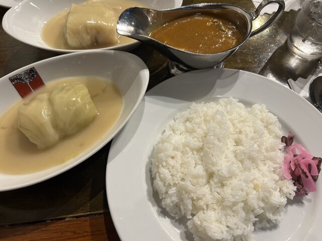 新宿で用事のついでにご飯を食べて行こうということになり、このお店が近くにあったので、行ってみました。ロールキャベツとカレーのセットがあったので、それをいただきました。