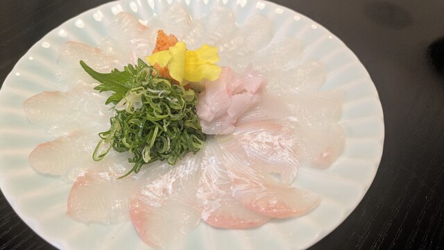 ・ヒラメの薄造りは透明感ある美しい盛り付けとしっとりとした食感