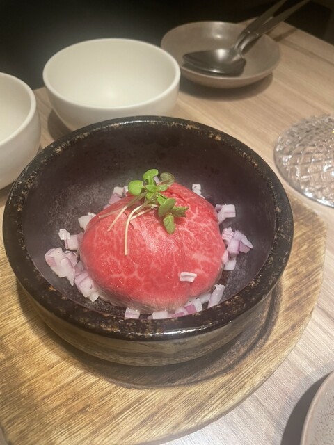 極みコースを頼みました。キャビアのタルタルから始まり演出、味全てが完璧でした。お肉は綺麗な刺しが入っており、サーロインといった少し脂が気になるお肉でも美味しく食べれました。サラダとデザートは選べます。早い時間が遅い時間に入店するとコースが少し安くなるのもお得です。