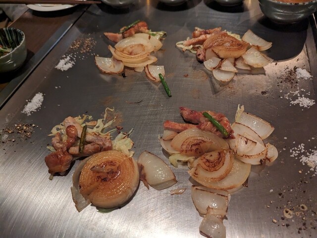 料理も良かったのですが、お店のスタッフさんの応対が素晴らしかったです。きめ細やかな心遣いが、料理を提供する時にも際立ってました。鉄板の上で、各人の手元に岩塩を置いていただけて、各種の料理に好みでつけれるのも良かったです♪
