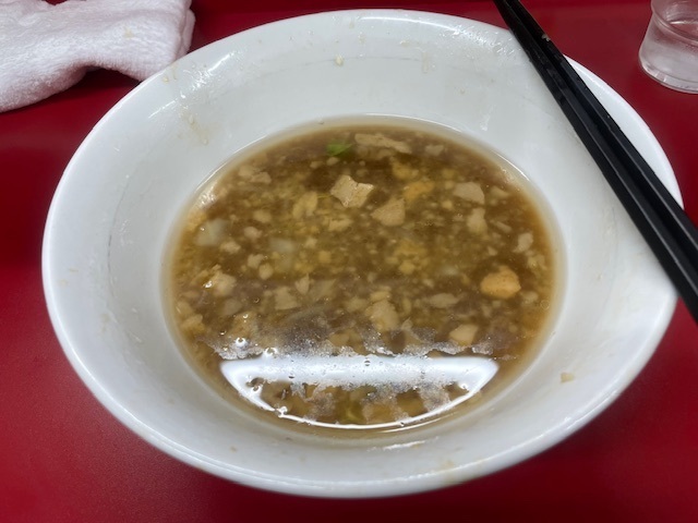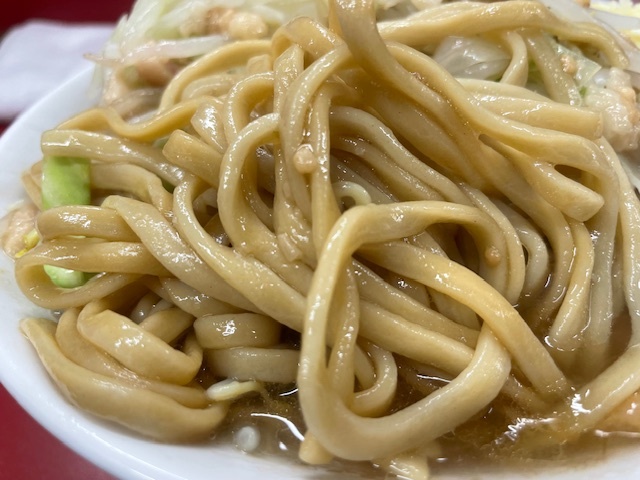 こちらは直系二郎の中でも麺量が多い事で有名なお店です。通常の麺量は350g以上、少なめにしても300g近くあったと思います。麺半分でも250g程度らしいので小食の方は少なめか半分をお勧めします。モヤシ7、キャベツ3位の割合のホクホクとした茹で上がりのヤサイに薄い味付けのアブラを絡めて食べ始めてゆきます。そしてレンゲがあれば飲み続けてしまいそうな非乳化の豚出汁の効いたマイルドなスープに直系二郎では細めで加水率も割とあるツルンとしてプリっとした啜りごたえのある麺をドンドン啜ってゆきます。カタメも出来るのですがジャストな茹で具合の方が自分は好みです。中から大判の分厚い豚が2枚出てきました。良く味の染みた柔らかな仕上がりです。ニンニクも辛さはなく旨味タップリのタイプで全体にコクとパンチを与えてくれます。バランス感抜群の一杯、直系二郎の中でもここを№ワンに推す方も多数いるのがよくわかりますね。今月の〆ラーメンを満喫させて頂きました。ご馳走様でした。