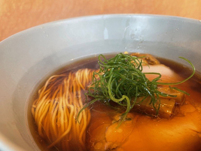 久しぶりなので塩煮干しとも思ったのですが、もっと久しぶりの醤油を注文しました。綺麗な琥珀色スープは。鶏の旨味や香味油、鰹節と昆布の和出汁が効いている清湯にキレのある醤油を合わせています。このスープに綺麗な麺線のストレート細麺がよく合います。具材は大判のチャーシュー、味シミの良いコリっとしたメンマ、九条ネギといったシンプルメンバーですが、美しさや素材、技術にこだわった一杯です。昼限定 チャーシュー御飯も相変わらず100円で提供してくれます。完飲完食、ご馳走様でした。