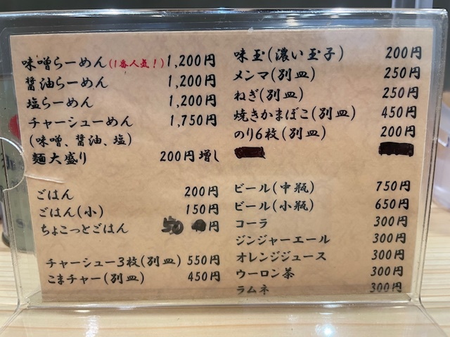 前回同様に味噌ラーメンです。醤油と塩もいつかは食べてみたいと思いつつも、北海道でもお目にかかったことが無いくらいの完成されたこの味を脳が覚えており、味噌ラーメンを注文です。スープを一口飲むとこれだ!と記憶が蘇ります。ニンニクが程よく香り、様々な味噌のブレンド、シナシナになるまで炒めてスープに溶けているタマネギ、山椒、生姜などが口の中に広がってゆき、これらを西山製麺の黄色い卵麺が絡めとります。具材のホロホロのチャーシューとゴロゴロ角チャーシューが程よく入ってます。1枚減ったのは止む無しでしょうね。ネギ・メンマともバランス抜群です。生姜も味変となり、更に味わい深いスープへと変化します。猛暑の中のこの熱い一杯はやはりパワーが漲りました。ご馳走様でした。