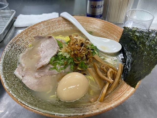 こちらや店主さん出身店舗の四谷がんこファンにはたまらないラーメンです。原材料だけで30万以上をかけたという贅沢な材料、塩ラーメンのスープは蛤の出汁のみとのこと。このスープによく麺が絡みます。具材はチャーシューや味玉、蛤ディップ、フリッター、海苔、メンマなどの一品一品そのまま食べても美味しい豪華なメンバー揃い踏みです。毎日違うラーメン作りの天才健在です。量は多いですが、会員なので完飲完食です。ご馳走様でした。