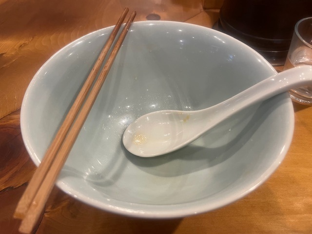 特製中華そばというメニューはなく、中華そばの食券と特製の食券を購入します。特製は基本のらーめん具材には乗らない、味玉、わんたん2個、チャーシュー1枚(丹波赤鶏チャーシューもしくは豚内ももチャーシュー)を追加する所謂全部乗せ的な内容となります。麺は細麺・太麺から選べるので細麺を、特製チャーシューは豚内ももチャーシューを選択です。美味しいのはわかっておりますが、やはり一口目からエクセレントです。ここ最近、淡麗清湯醤油の有名店を食べ歩いておりますが、群を抜いてます。9種の醤油を使用したというスープは奥深い味わいを醸し出し、そこにシルキーでツルンとした細麺がよく絡みます。具材メンバーは、キメ細かな肉質で噛めば噛むほど味が出るチャーシュー、生姜の香り漂う具材たっぷりで厚手でツルモチの皮を纏ったわんたん、黄身は言うまでもなく白身までもが半熟で味の染みた味玉、程よくに煮つけたメンマ、甘みと辛みのバランスが抜群の九条ネギ。移転しても醤油の達人・しば田マエストロ健在です。完飲完食、ご馳走様でした。