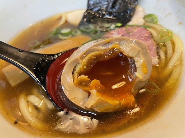 醤油も汐(しお)も有名ですが、葉月らぁめんを推す方も多いので葉月特らぁめんを注文しました。大正解です。一口目から節の香る深みのあるスープは超絶です。このスープには以外にもよく豚魚系で使用される加水率高めの中太のツルンとした丸切のストレート麺です。これが青ネギとも合わさって良く絡んでバランス取れています。具材は薫陶高い歯ごたえの良い吊るし焼の豚ロースチャーシュー、肉そのものが美味しい柔らかな鶏ムネチャーシュー、柔らかくて大きな枕木メンマ、茶色く仕上げた味シミの良い白身と甘くて少しビターなトロトロの黄身のコントラストが抜群の味玉といった一切抜かりの無いメンバーです。極寒と嫌な想いを全てこの一杯が吹っ飛ばしてくれました。完飲完食、ご馳走様でした。