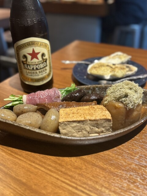 落ち着くお店で、おでんだけでなく、お酒のツマミにぴったりな小皿料理がたくさんあります♪
